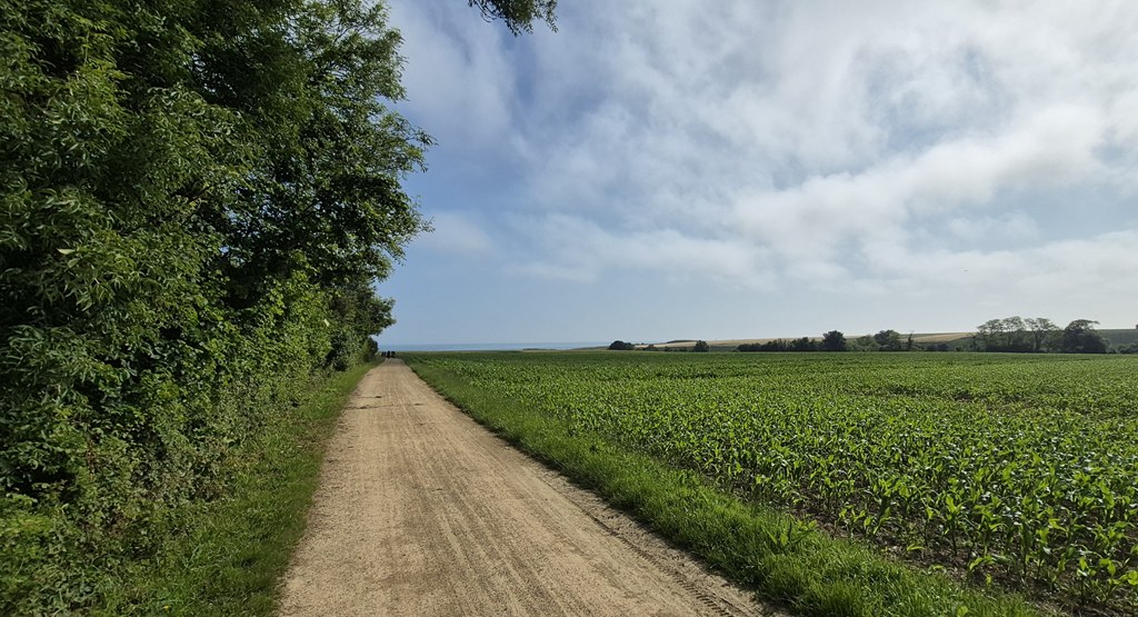 I’d already sensed I was approaching the coast. Something about the contour of a long slow rise in the road had planted the idea in my mind. Soon after, in one of the many small villages, I turned left onto a narrow road between houses of the town. The road back a gravel track, as a wave of laden cyclists swept past me heading in the other direction. It was obvious I had joined a more major touring route. The track narrowed to a sandy brown trail, and swung slightly left to reveal where I was.