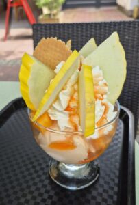 Once again, finding it involved as much luck as lunch had. The urban shopping street I headed away from the river on soon brought me to a shop with the most impressive ice cream and sundae array I have ever seen. And I didn’t even have a guilty conscience – not only was I burning thousands of calories on the bike, but the huge concoction I ordered had at least as much fresh fruit in it as ice cream. Definitely at least 1 of my 5 a day.