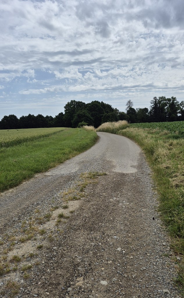 The remainder of the morning and early afternoon rolled by as a delightful sequence of quiet lanes, gravel farm tracks, snaking along little streams through small villages. The bare bones of this part of the tour I’d found on Komoot, but I’d hacked it around a fair bit so I’ll claim at least some of the credit for the lovely route. At one point I was filled with so much joy at the gravel track I was bumping along that I just had to stop and take a photo. It was utterly unremarkable but, in the middle of fields, away from any traffic or anything much in fact, it just felt so open and free. The real essence of what an easy paced tour across countries should be. And a perfect finale really to this one.