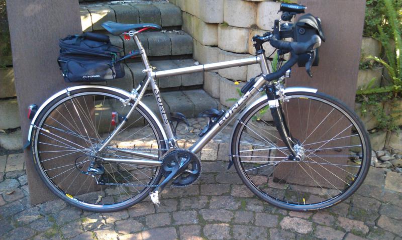 All in all, my nervousness seems to have proved unfounded. Everything fitted on the bike, and so far at least after one 100km trial ride, seems to work reasonably well together. Jolly has joined me in adding some kilos, around 3.5kg to be exact, bringing her up to around 11.5kg with bags unloaded. Out on the road though, the weight isn’t really that noticeable except in the hills. I was sceptical of the benefit of the 11-28 cassette, but it was a delight to have one extra gear to help me spin that weight easily up the steepest sections of Helshoogte.